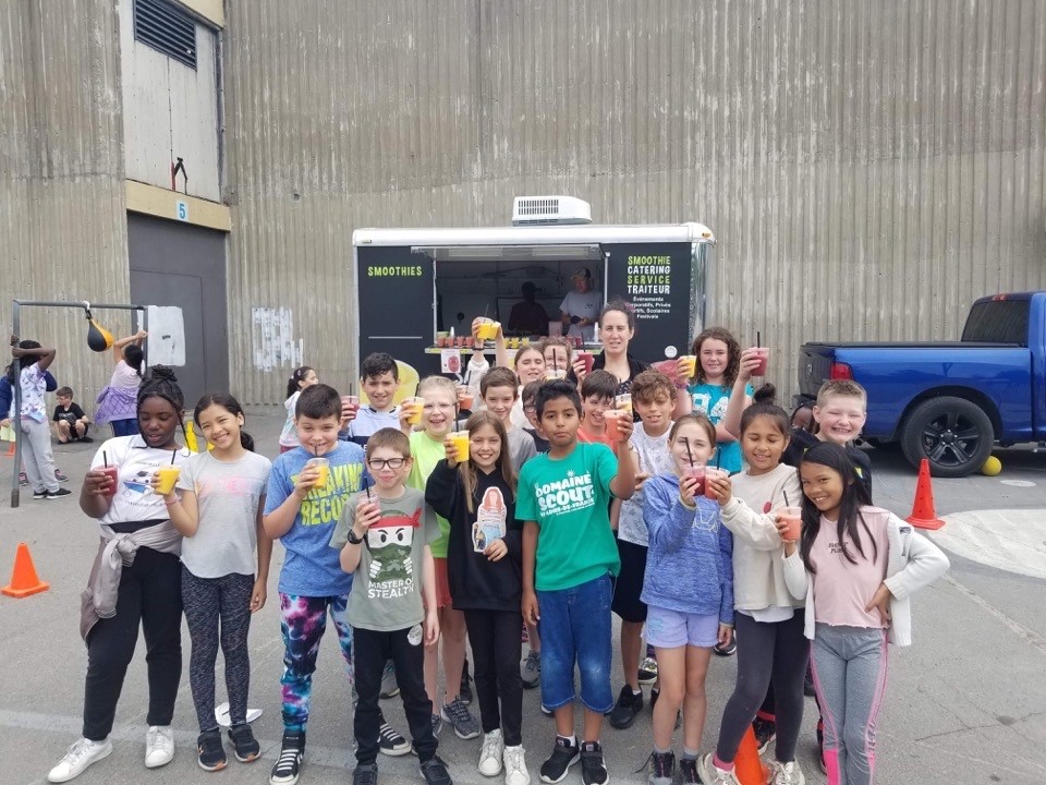 Le 7 juin, tous les élèves de l'école ont dégusté de savoureux smoothies. La compagnie Smoothfruit est venue dans la cour d'école afin d'offrir un breuvage fruité aux élèves. Cette collation surprise fut offerte aux élèves par la direction afin de souligner les efforts fournis tout au long de l'année. Ce fut délicieux!
